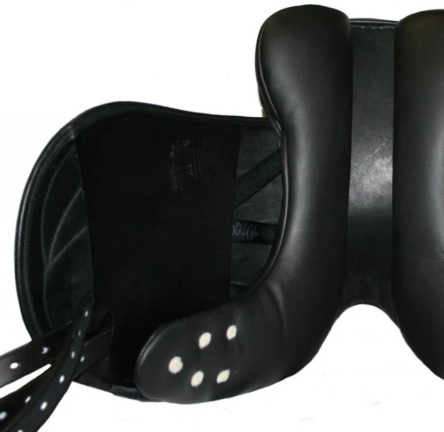 The unique, ergonomic wooden tree features a ‘Short Back Panel’ which complements the confirmation of the modern sports horse. This promotes maximum shoulder rotation whilst reducing loin pressure, permitting the definitive in freedom of movement, resulting in a content and happy horse. A pure wool felt lining with natural wool stuffing offers essential cooling qualities while the moulding around the back affords the highest level of comfort and improved weight distribution.