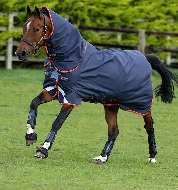 The best-selling Amigo® turnout. Strong 1200D polyester waterproof and breathable outer with 100g fill. Surefit Neck design with Disc Front closure to give freedom of movement to graze. Dual Leg Arches, reflective strips, wipe clean tail cord, liner loops, three secure straight surcingles and shine enhancing polyester lining. Detachable hood included.