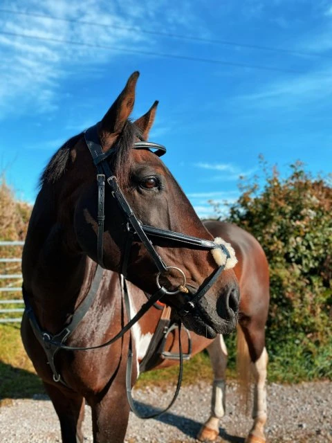 A stylish new grackle bridle developed with an anatomic headpiece with soft padding to help alleviate unwanted poll pressure. Raised and padded browband and noseband with sheepskin grackle noseband and sure grip reins. 5/8โ cheeks
