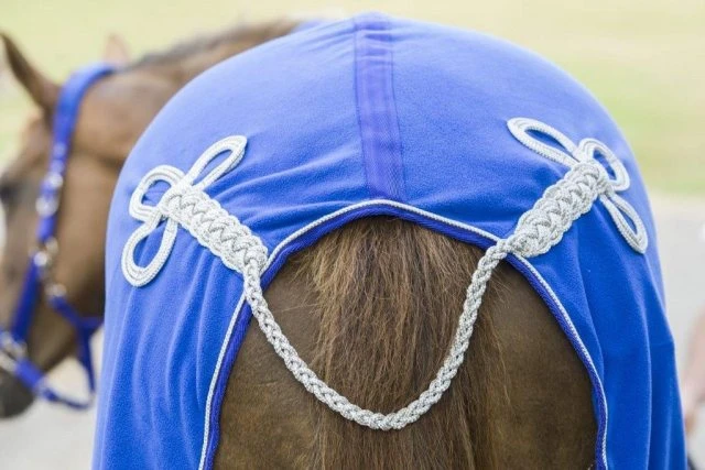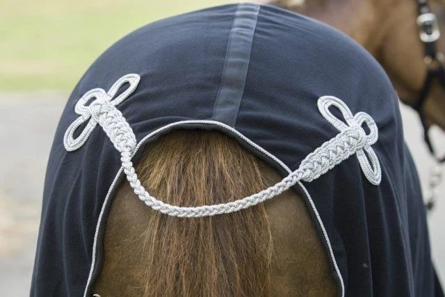 The anti pill show rug is made from a heavy weight quality fleece with a smart show front closure, clever hidden surcingles and an attractive contrast decorative flower.