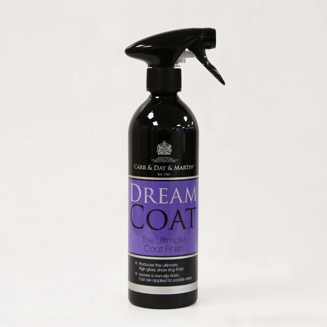 Outshine the competition with Dreamcoat, the ultimate high gloss finish. The unique non-slip formula highlights muscle definition and can be used on the saddle patch, leaving no grease or residue. Spray Dreamcoat onto manes and tails prior to plaiting for a high shine finish.
