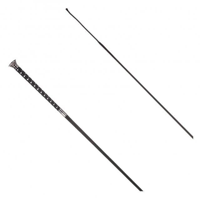 This CD dressage whip features a metallic fleck handle, plain braided design and metal cap. Made in England