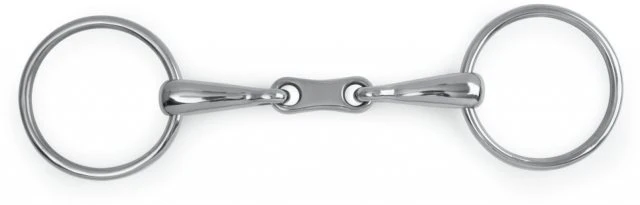 The Shires Loose Ring Snaffle is a loose ring snaffle with a traditional flat French link mouthpiece. Mouthpiece thickness: 17mm. Cheek height: 65mm. Made from Stainless steel, this is the most common material used for bits. Durable, easy to clean, tasteless and does not rust.