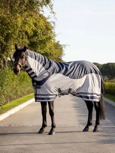The extended shaped belly flap maximises coverage and features a three-strap closure with detachable central strap that helps to self-right the rug. The design registered angled front fastening system distributes pressure to prevent rubbing on the point of shoulder and across the chest.