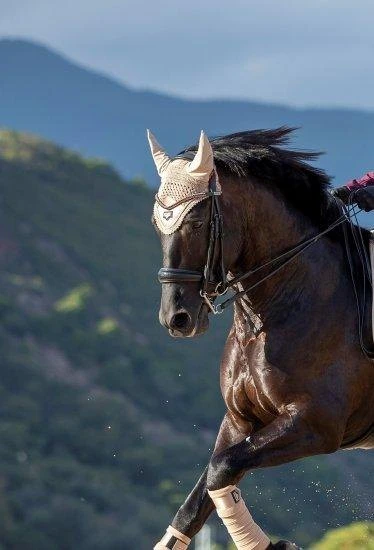 Supporting the signature LeMieux Loire embossed metal motif these luxurious fly hoods are a stylish addition to the collection. Beautifully made from three-way hand knitted crochet with a luxurious satin fabric front piece and soft stretch Lycra ears.