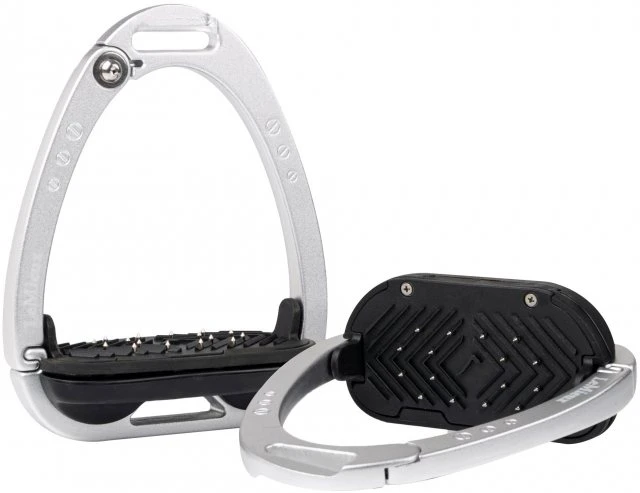 The footplate is supported by a twin balance arch system that distributes the weight evenly across the base of the stirrup frame. The apex of the frame is recessed and off-set, encouraging a 45 ¼ outward orientation which makes it easier for the rider to locate the optimum angle for the foot and regain a lost stirrup.