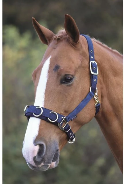 The Shires economy nylon lunge cavesson is made from strong nylon web with three rings on the noseband.