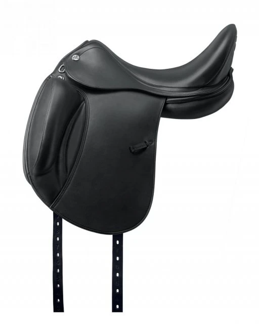 The tree places the rider closer to the horse guaranteeing the best freedom of movement. The saddle is very comfortable also for female riders (“unisex” tree). The rear part of the seat is significantly wider than traditional dressage saddles. It contains two enlarged membranes, obtained by applying the new OTI ( “Over Tree Injection) technological procedure: the elastic material is over injected into the tree. The front girth straps are elastic, while the rear ones determine the balance of the saddle. The panels are shaved in the front to give the most freedom to the shoulders. The panels are wider along their entire length to distribute the weight of the rider more evenly. The three withers sizes fit all horses. The saddle comes with the F23.0 – trapezium pad for a perfect fit.
