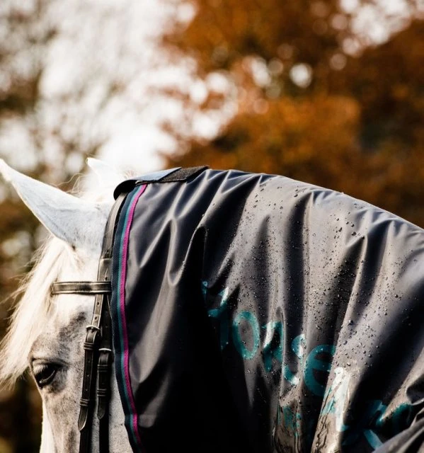 This lightweight, breathable waterproof rug protects your horse and tack from the elements with top to tail coverage. Featuring an integrated neck cover that attaches neatly to your headpiece via a secure Velcro strap, the rug includes dual Velcro straps on the underside of the neck cover for an adjustable fit. Paying attention to careful seam positioning throughout for a comfortable ride, the single front closure, reinforced stirrup holes, and belly strap allow for a secure fit.