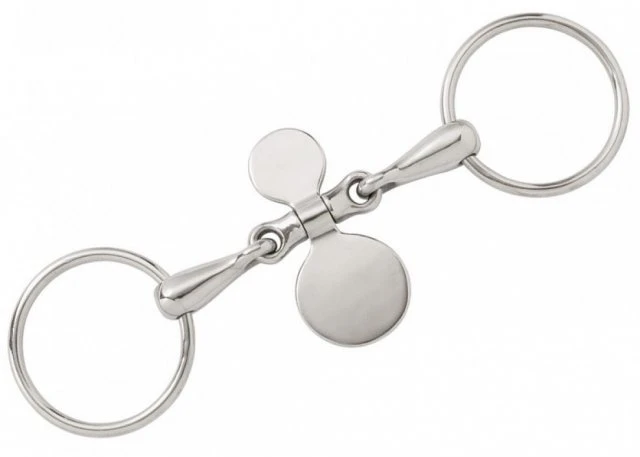 A Stainless Steel closed Spoon Tongue Bit has loose rings and a double jointed centre. This allows movement in the mouth. The central Sppon part helps to prevent the horse from getting his tongue over the bit.